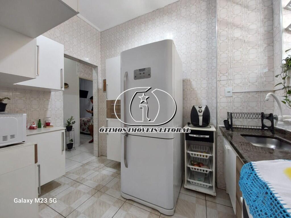 Vende-se apartamento praticamente "pé na areia," ou seja à 40m da areia da Praia da Biquinha, Centro de São Vicente, Litoral Paulista! Sua localização é o ponto forte desta proposta pois o fato de estar no Centro da Cidade, o acesso a serviços como redes bancárias, hospitais, transportes, Shopping Brisamar, bares, restaurantes e redes de supermercados o fazem um imóvel com muito valor agregado! Esta unidade possui; Sala ampla podendo ser utilizada em dois ambientes, dois amplos dormitórios com as janelas voltadas para a rua proporcionando uma ventilação suplementar, cozinha planejada com mobiliários muito bem cuidados, e área de serviço ampla e bem arejada com garagem coletiva! CRECISP; 30.578-J